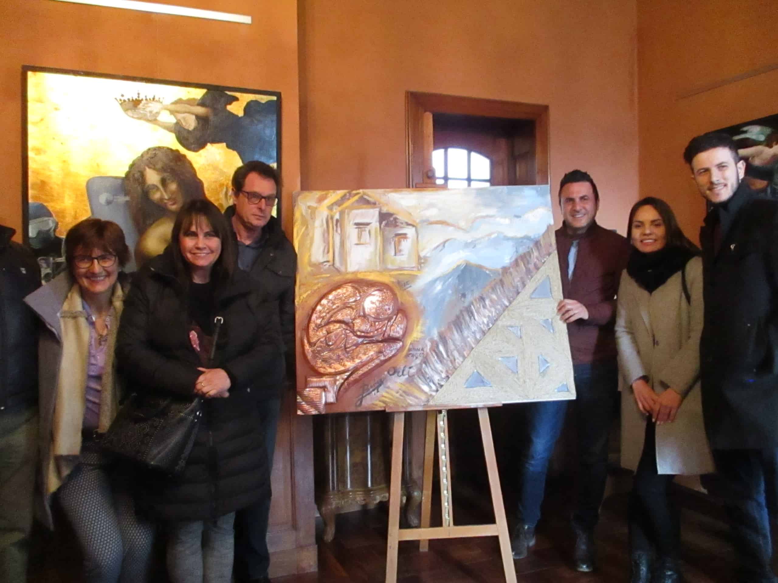 Il giorno di apertura della mostra gli artisti hanno realizzato insieme un’opera a quattro mani: il quadro, che simboleggia il comune dell’Alta valle Intelvi è stato a offerto in beneficenza dagli artisti e il ricavato della vendita, pari a 600 euro, è stato donato al Comitato Maria Letizia Verga.