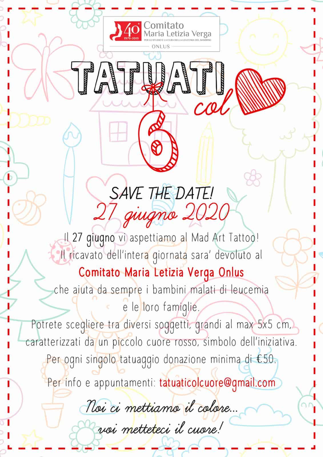 ❤️T A T U A T I C O L C U O R E 6 !!!❤️ SABATO 27 giugno 2020 va in scena la 6ª edizione di “TATUATI COL CUORE” i cui proventi saranno interamente devoluti al COMITATO MARIA LETIZIA VERGA. Stesse modalità delle prime edizioni: diversi soggetti tra cui scegliere (5x5 cm max) […]