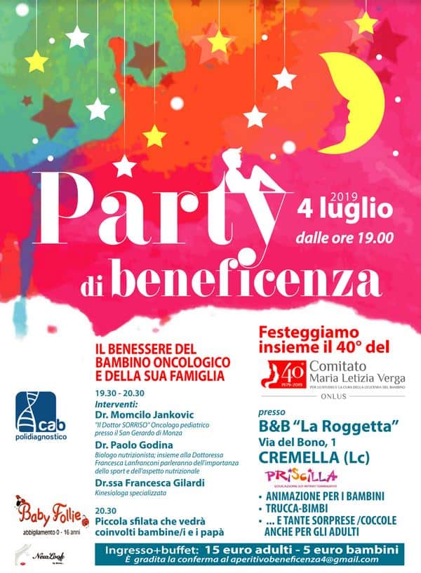 Sarà una serata di sport, di spettacolo e di cuore! DOVE ACQUISTARE I BIGLIETTI I biglietti sono disponibili in prevendita presso le sedi delle Associazioni coinvolte (Comitato Maria Letizia Verga e SLAncio), le sedi Scuderie Ferrari Club di Caprino Bergamasco, il Centro Sportivo Monzello, nelle sedi di Milano e Bergamo della segreteria operativa, il Tourist […]