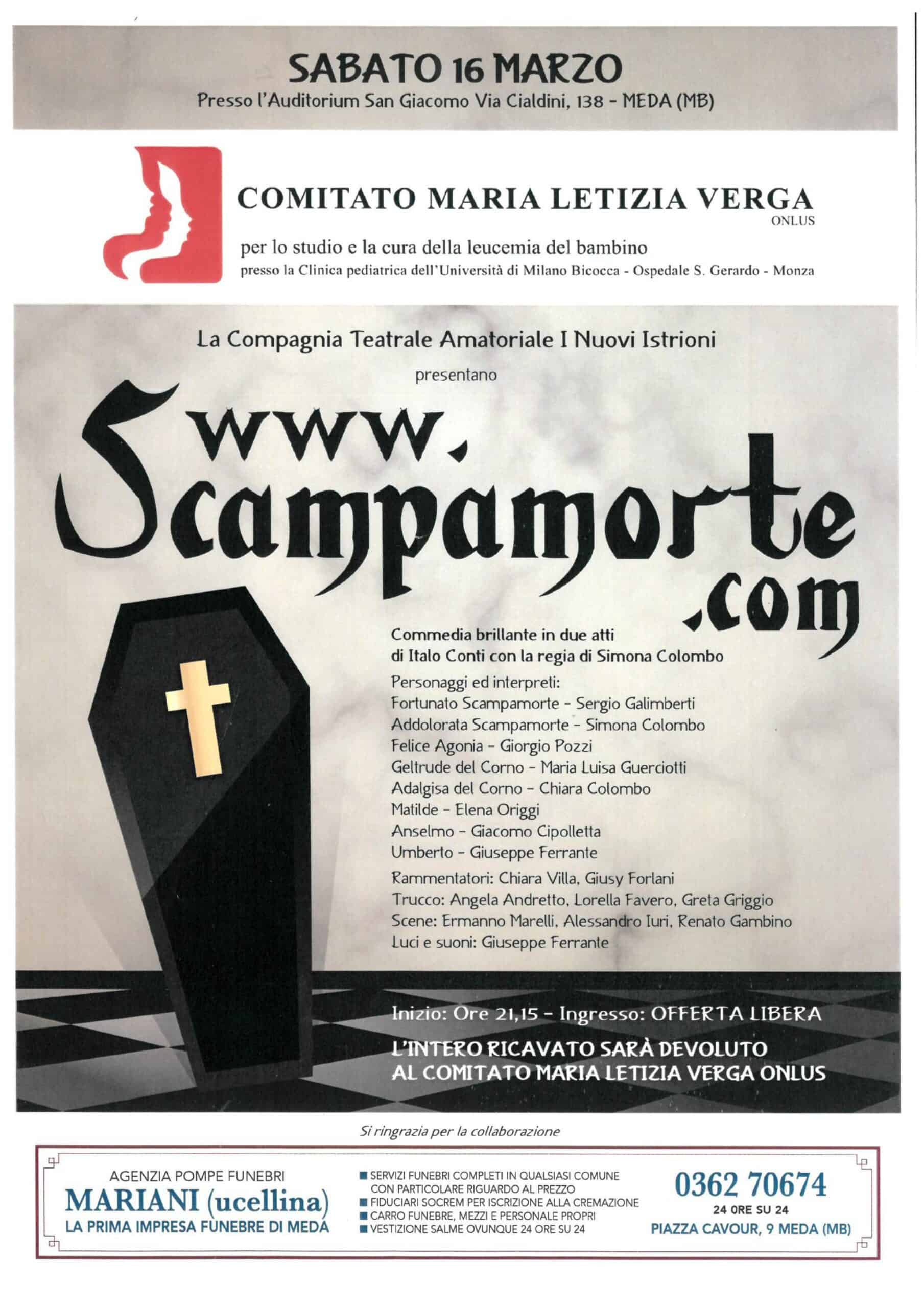 Commedia brillante in due atti di Italo Conti. La Compagnia Teatrale "I Nuovi Istrioni" in scena per sostenere il Comitato Maria Letizia Verga.