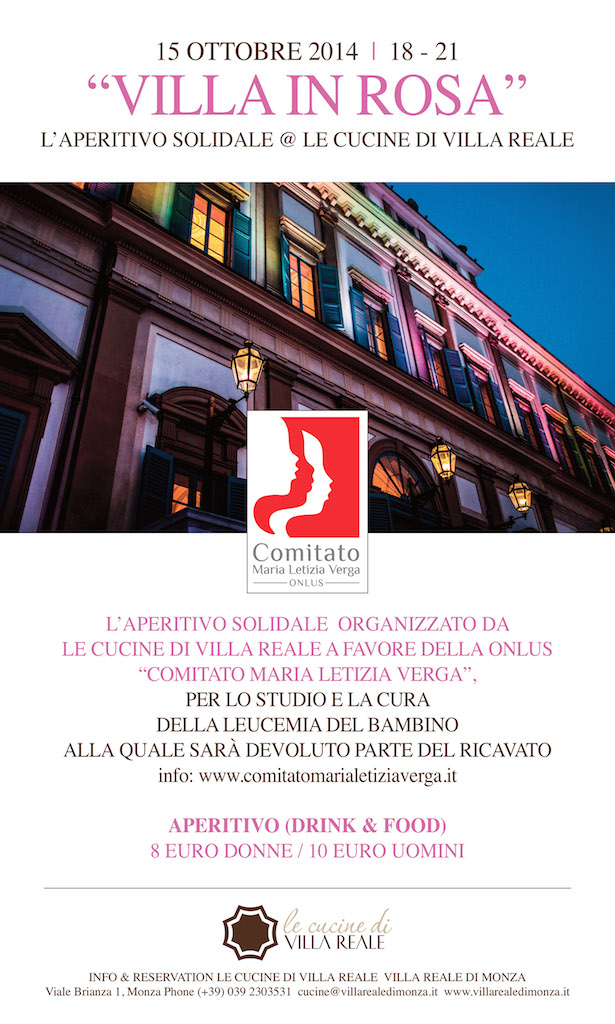 Aperitivo solidale organizzato da Le Cucine Di Villa Reale a favore del “Comitato Maria Letizia Verga Onlus per lo studio e la cura della leucemia del bambino” alla quale sarà devoluto parte del ricavato.